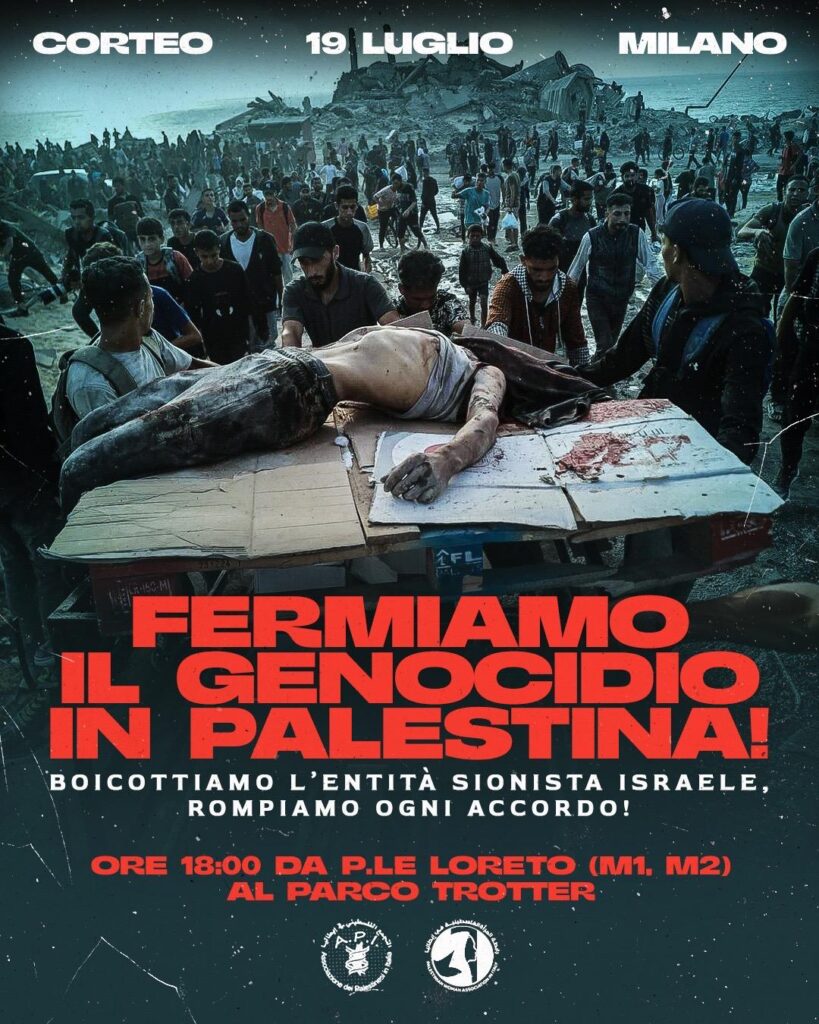 Come sezione Anpi di Crescenzago partecipiamo e invitiamo a partecipare a tutte le inizative in favore della popolazione Palestinese, come la manifestazione che sabato 19 luglio alle 18 partirà a Milano da Piazzale Lorerto, in favore della pace, della fine della guerra e per urlare ancora una volta: FERMIAMO IL GENOCIDIO IN PALESTINA!